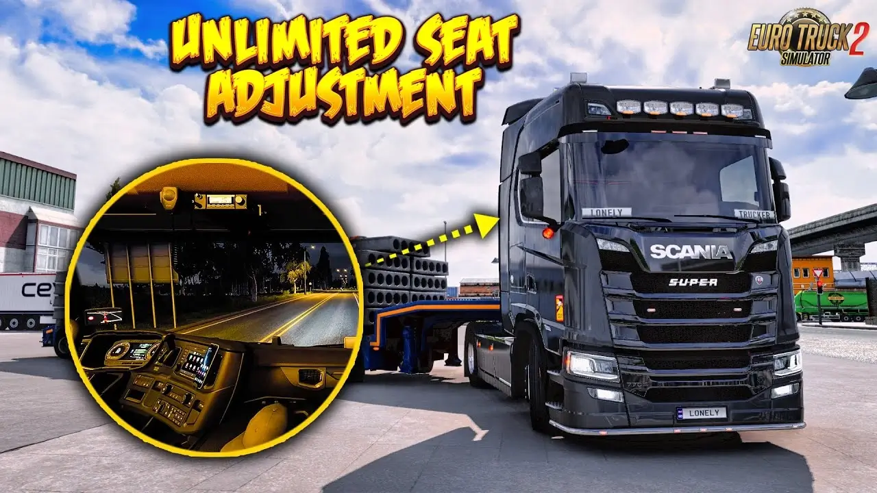 ๐ช Seat Adjustments No Limits by Smokzda for ETS2 - this mod removes all restrictions on driver seat adjustments, allowing you to freely move and position the seat in any direction (forward, backward, up, down, tilt, etc.) for maximum comfort and customization in ETS2. Perfect for players who want a more realistic and personalized driving position, especially with different truck interiors and custom seats.