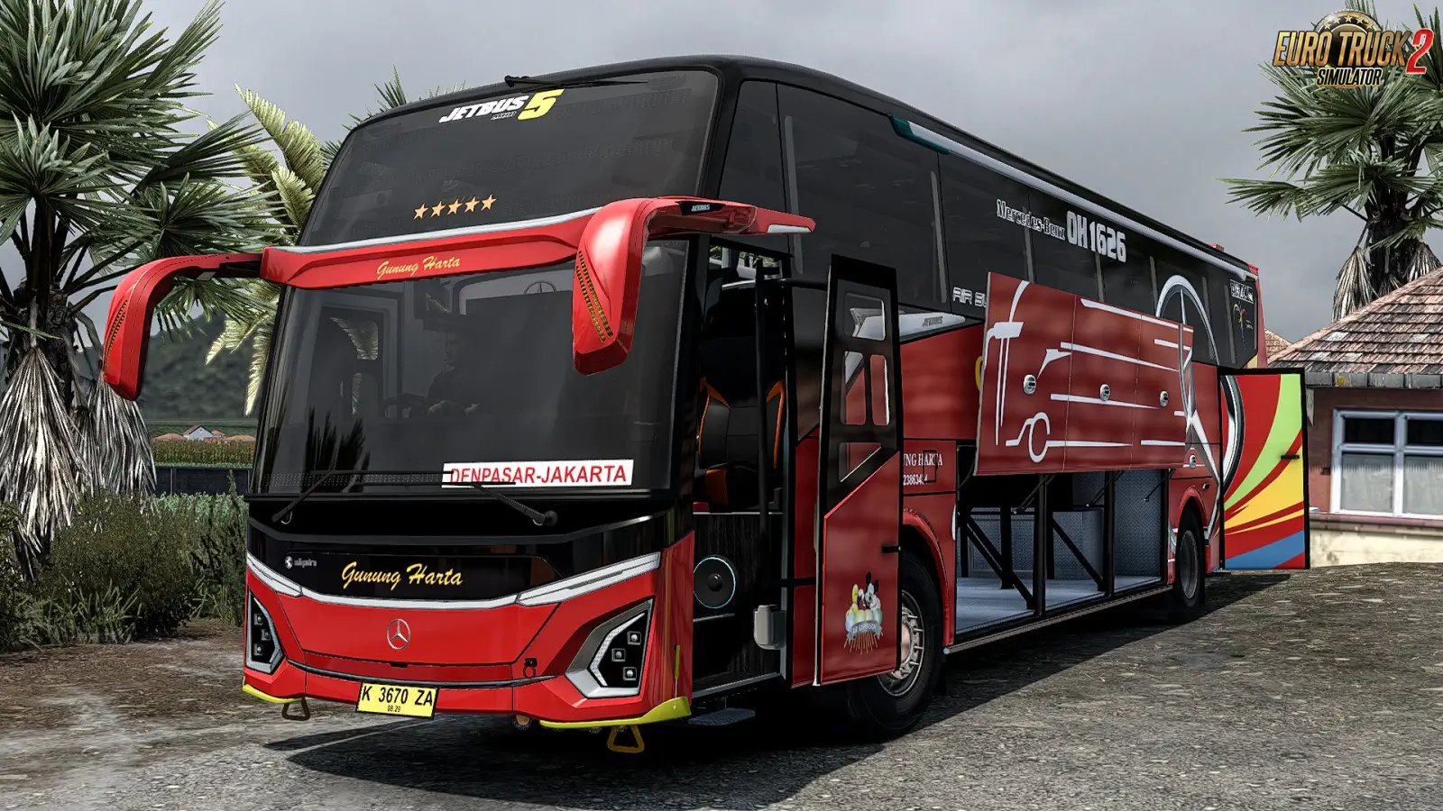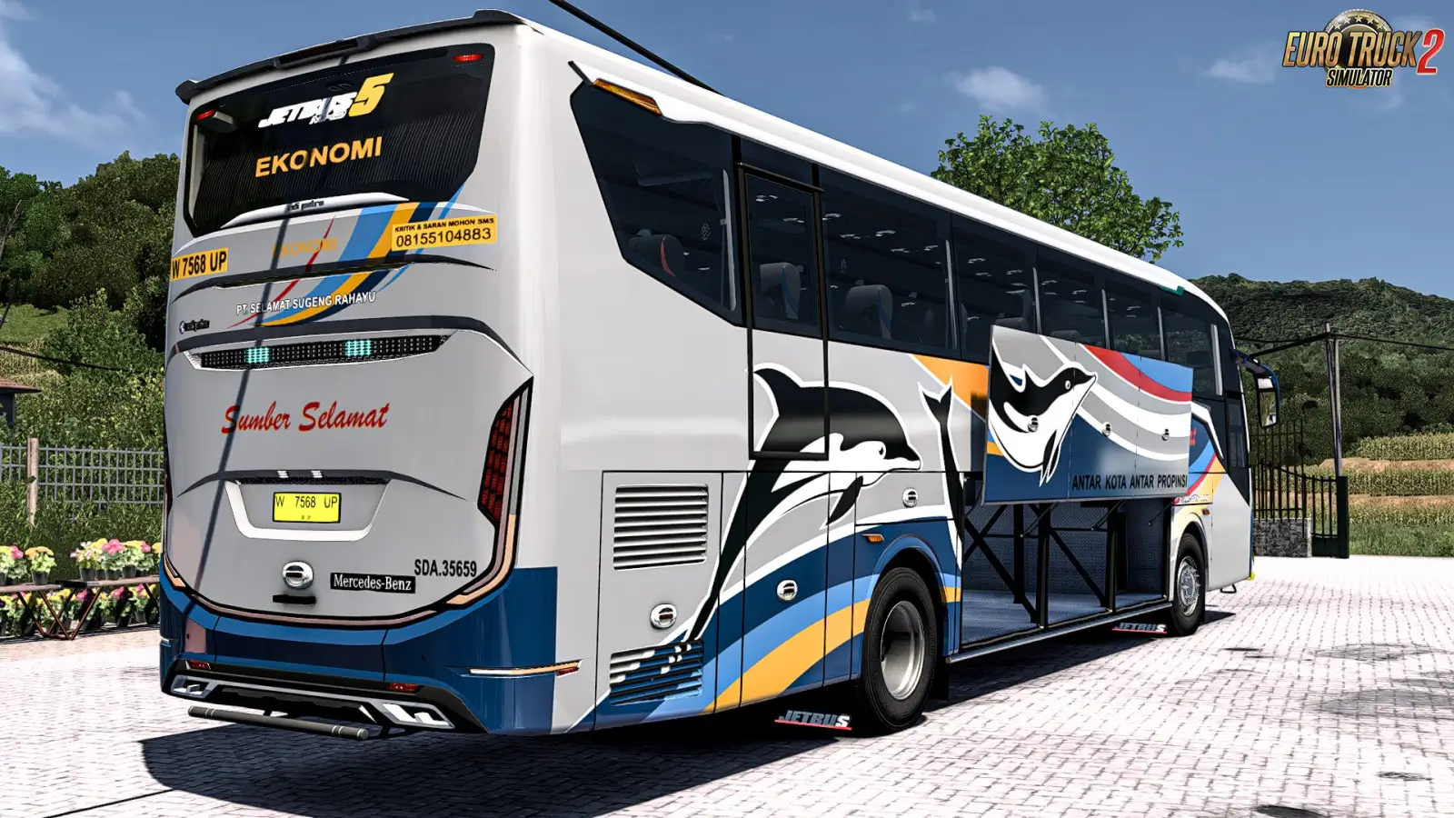 ๐ย JetBus 5 Series Bus for ETS2 -ย is a standalone bus mod for ETS2 players, replicating the fifth-generation JetBus 5 coach from Indonesian manufacturer Adiputro Bodywork. This luxurious intercity bus is tailored for medium- to long-haul routes in Southeast Asian-style transport, featuring a sleek, aerodynamic design with high-capacity seating for up to 50+ passengers. The mod emphasizes Indonesian bus culture with vibrant liveries, customizable accessories, and realistic physics for urban and highway driving. It includes multiple chassis options and cabin variants for variety, with high-detail 3D models, 4K textures, and passenger transport compatibility.