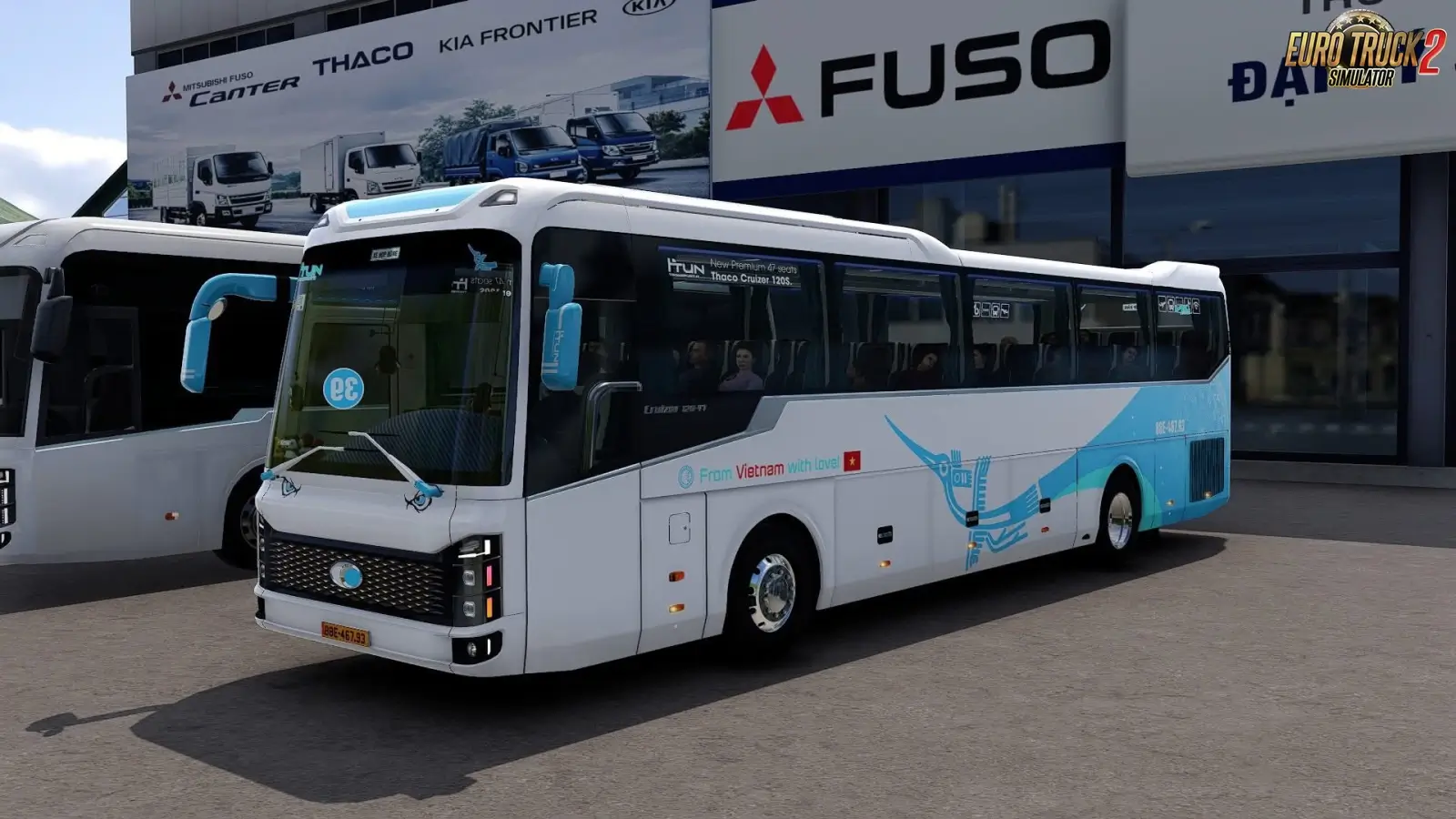 🚌 Thaco Cruizer 120s for ETS2 - this mod brings a modern Vietnamese long‑distance coach bus to Euro Truck Simulator 2 as a high‑quality standalone passenger vehicle. Designed for immersive intercity and international passenger transport, this bus features detailed modeling, smooth physics, realistic engine behavior, and an authentic Asian coach‑driving feel across European roads.